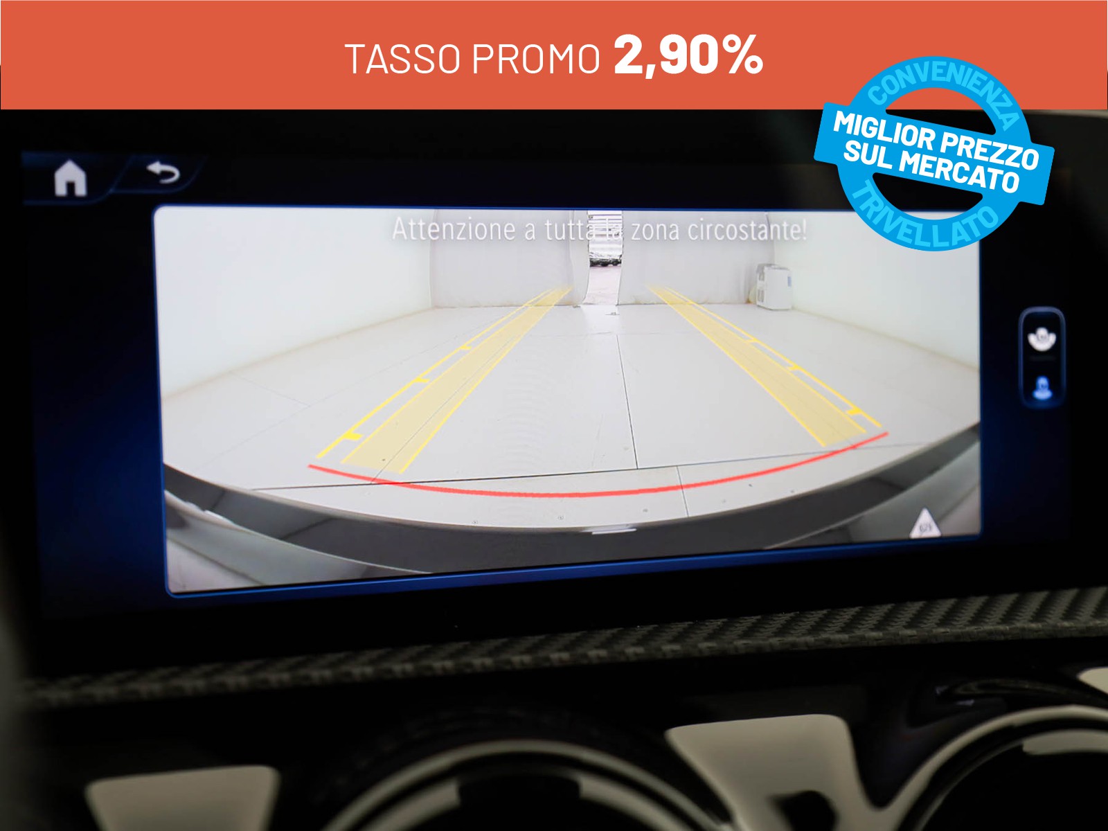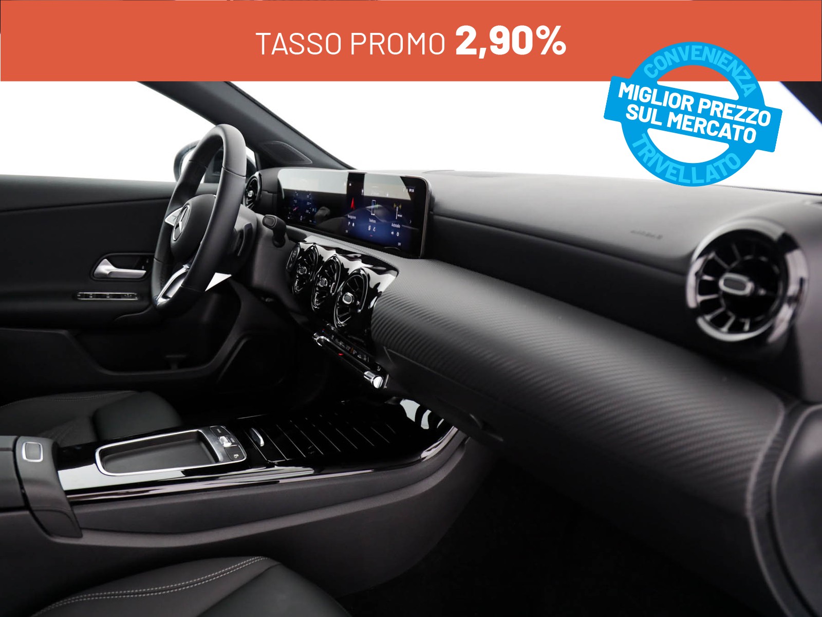 Durata del finanziamento 36 mesi. Offerta prezzo chiavi in mano € 29900 (IVA, Messa su strada e IPT inlcusa) - anticipo € 5980 - 36 rate da € 141 (escluse spese incasso RID) – TAN 2.9% TAEG 3.8% - maxirata finale € 20936.41. Importo totale del credito € 23920. Imposta di bollo su finanziamento € 16, spese di istruttoria € 380 e spese di incasso RID € 4.27. Importo totale dovuto € 26410.71. Valori IVA inclusa. Salvo approvazione Mercedes-Benz Financial Services Italia S.p.A. Fogli informativi disponibili in concessionaria.