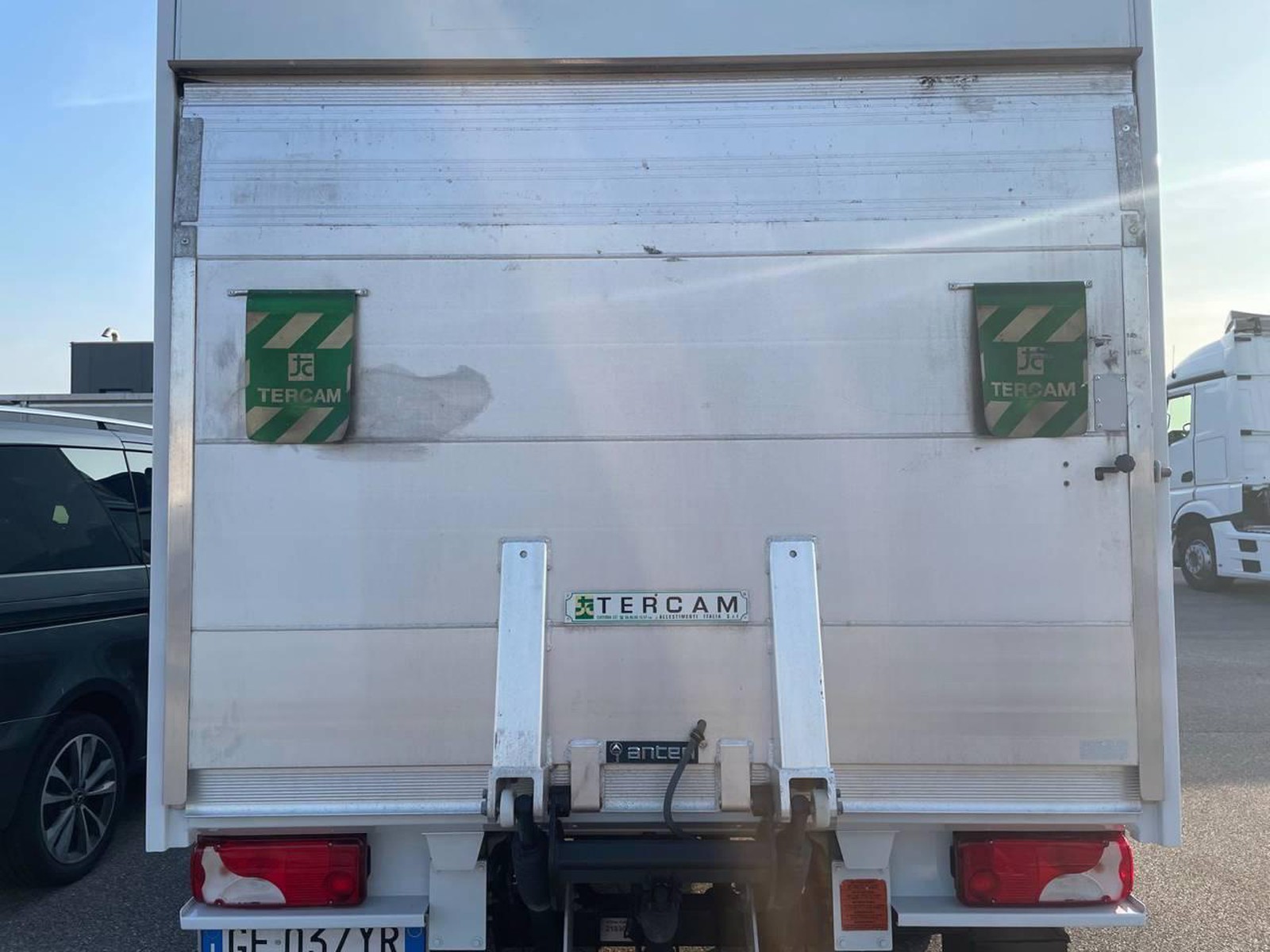 NOTE PREZZO: Furgonatura in lega leggera TERCAM, pareti esterne lisce, colore bianco, misure esterne (lung. x larg. x alt.) 4.200mm x 2.200mm x 2.400mm, porta laterale DX da 1000mm x 2.180mm, predellino laterale fisso, cassetta portrattrezzi in PVC nero su lato DX, luce interna a LED, spoiler sopra cabina in colore carrozzeria, luci laterali di sagoma e posteriori di ingombro, sponda idraulica di sollevamento ANTEO F3CL1MA con funzione di portale posteriore e spondina superiore con apertura a ribalta, capacità di sollevamento massima della sponda 750Kg, unità di comando laterale DX, piedini stabilizzatori idraulici e comandi a pedale sulla pedana. N° 3 posti omologati in cabina, portata utile del veicolo 700 Kg.